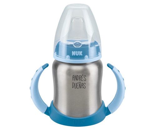 - Taza de acero Nuk, guay como alternativa al plástico y además te la personalizan si quieres así que nos viene perfecto porque las pegatinas acaban fatal