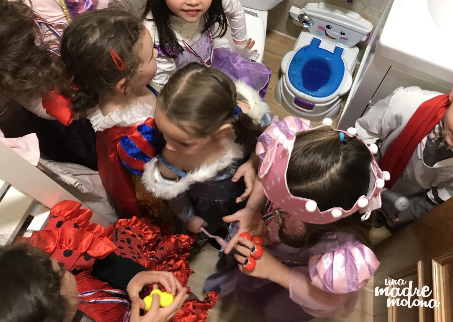 Una de vosotras me sugirió contratar a una animadora profesional pero, honestamente, a mí me va la marcha, además en mi día a día me surgen más bien pocas oportunidades de disfrazarme y animar un cotarro, ¿sabéis la ilusión de niñamolona al ver a su madre caracterizada y dándolo todo una tarde al año? Además no olvidemos que tiene 5 años y que cada año que pasa es uno menos para que empiece a sentir vergüenza ajena.